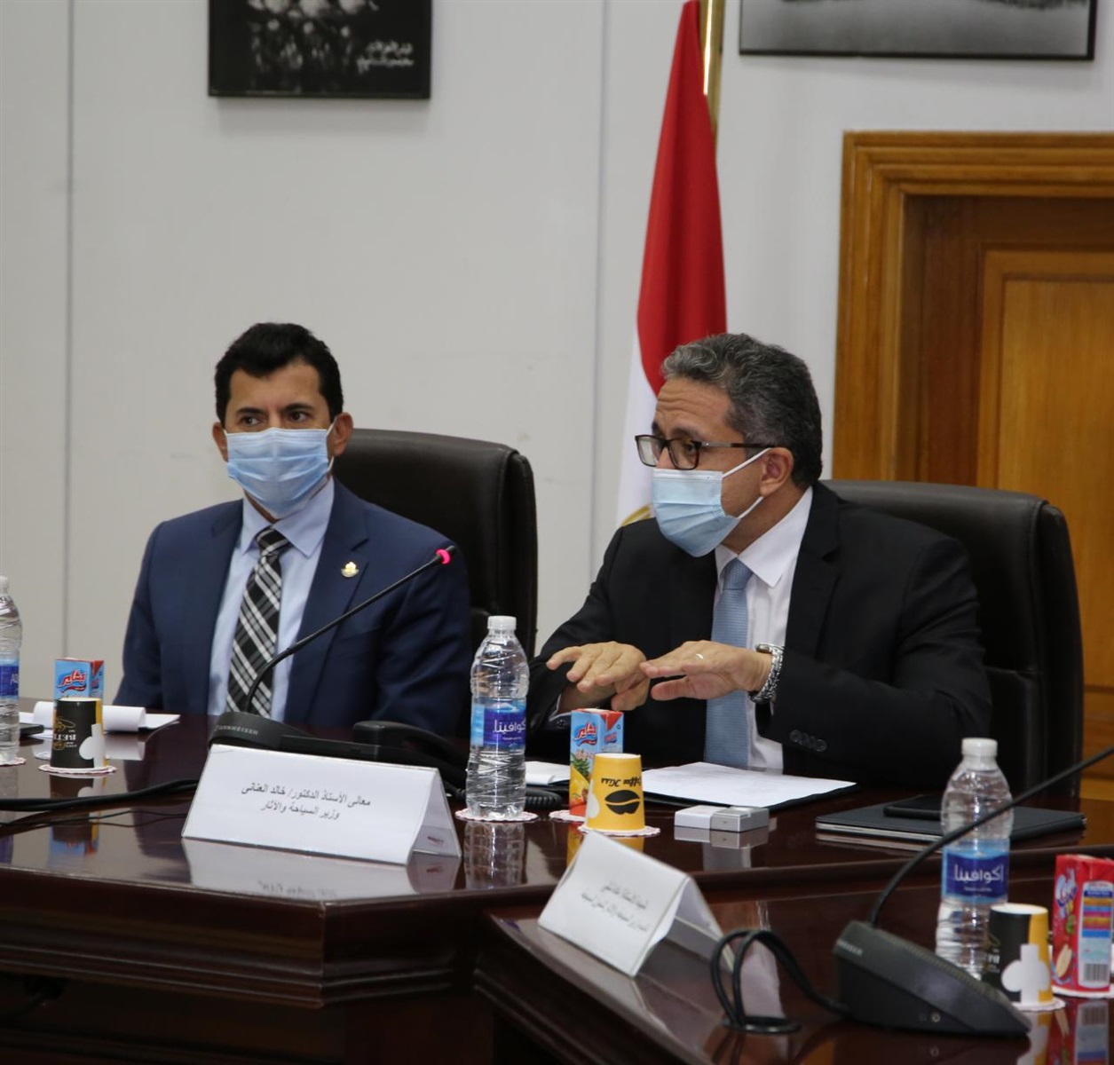 وخلال الاجتماع، أكد الدكتور خالد العناني، علي حرص الوزارة علي التنسيق والتعاون الدائم مع وزارة الشباب والرياضة، مشيرا الي تعاون الوزارتين في تنفيذ العديد من الفعاليات الدولية والتي من بينها مراسم سحب قرعة النسخة ٢٧ لبطولة العالم لكرة اليد للرجال 2021، وبطولة مصر الدولية المفتوحة للإسكواش "للرجال والسيدات" والتي استضافتها مصر خلال الفترة من 10 الى 17 أكتوبر الجاري بمنطقة الأهرامات، لافتا الى أن استضافة الفاعليات الرياضية الكبري في المواقع الأثرية يعد وسيلة لإبراز معالم مصر الحضارية الفريدة كما أن الرياضة كانت جزء أساسى من الحضارة المصرية القديمة.