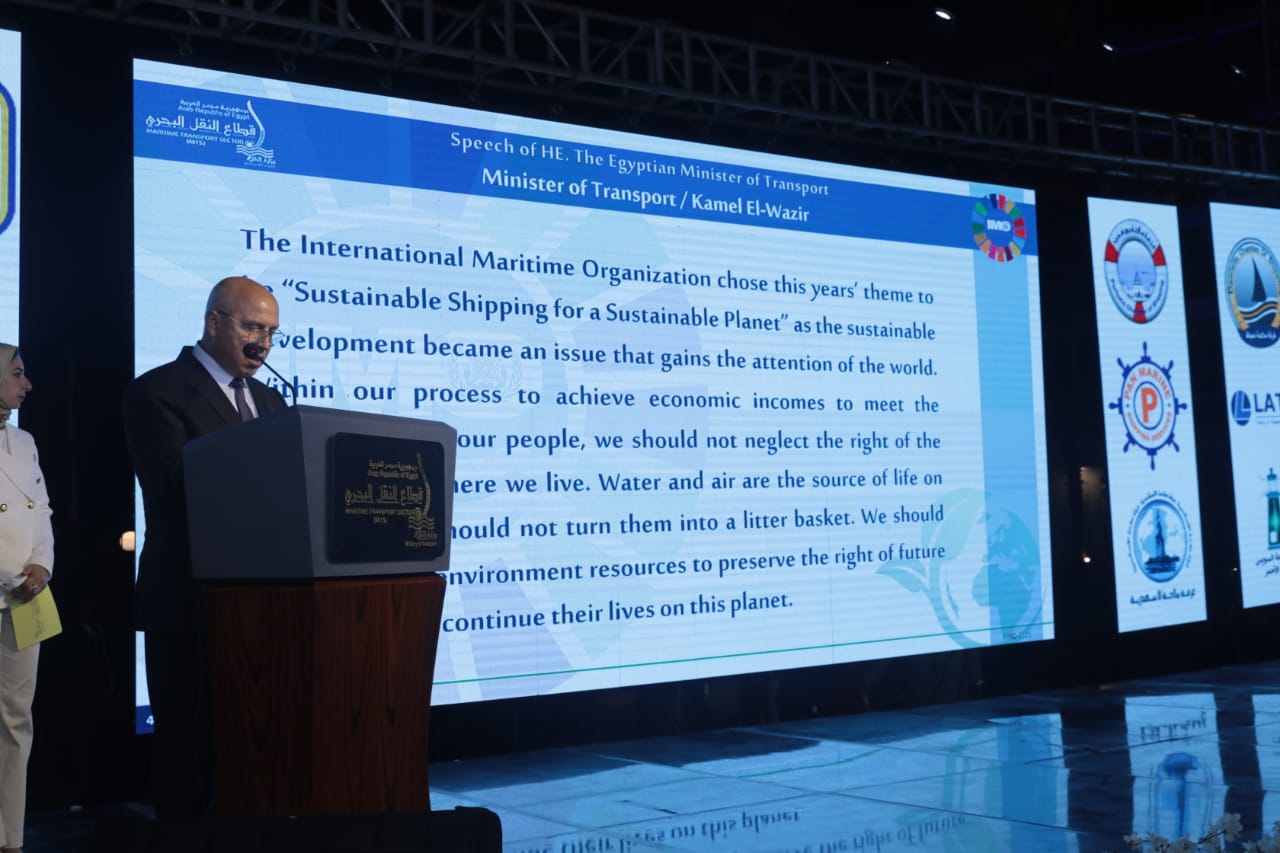 وأشار الفريق مهندس كامل الوزير أن المنظمة البحرية الدولية قد إختارت هذا العام شعار " نقل بحري مستدام لكوكب مستدام"حيث أصبحت التنمية المستدامة قضية تحظى باهتمام العالم أجمع، في خضم سعينا جميعًا نحو تحقيق العائدات الاقتصادية التي تفي بآمال الشعوب لافتا إلى أنه لا يجب أن نغفل حق البيئة التي نعيش فيها، وأن الماء والهواء هما مصدر الحياة على الأرض ويجب الحفاظ عليهما وبهما من حق الأجيال القادمة في استكمال حياتهم على هذا الكوكب و من هنا بدأت كافة الجهود من أجل تحقيق التنمية المستدامة وأهدافها السبعة عشر.