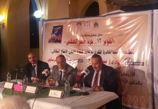 أقامت مكتبة القاهرة الكبرى، التابعة لقطاع شؤون الإنتاج الثقافى برئاسة المخرج خالد جلال، ندوة لمناقشة كتاب "أكتوبر 73 حرب مصر العظمى" للكاتب الصحفى أحمد السرساوى، بمقر المكتبة بالزمالك.