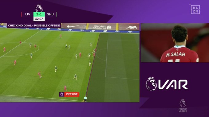 ألغت تقنية الفار هدفًا لفريق ليفربول عن طريق لاعبه محمد صلاح في شباك شيفيلد في المباراة التي تجمعهما في الجولة السادسة لبطولة الدوري الإنجليزي.