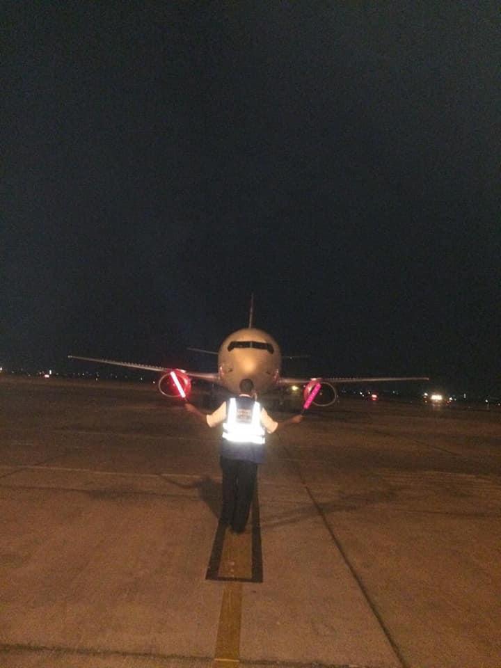 وكان في إستقبالهم الطيار هشام محمود فريد مدير المطار حيث تم إستقبال الرحلة بتقليد رش المياه المتبع دوليا وقد قامت العلاقات العامة بإستقبال الركاب بحفاوة مع الالتزام بكافة الإجراءات الوقائية الازمة لهم وإنهاء إجراءات الوصول والسفر بسهولة.