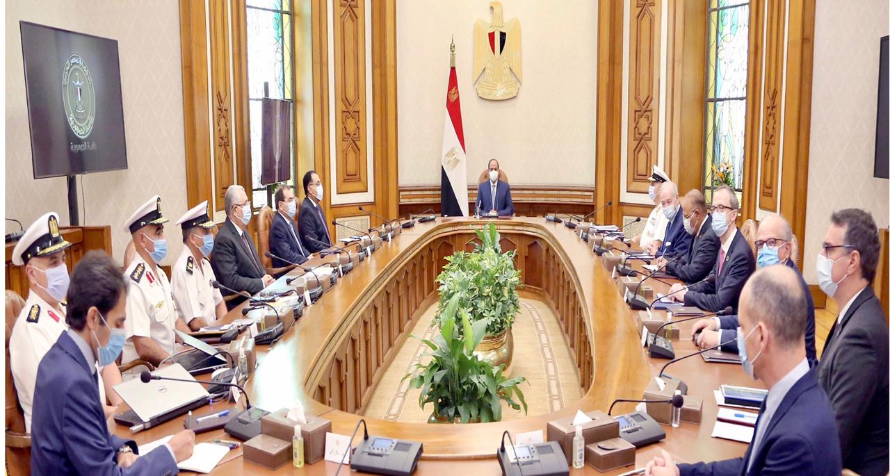 اجتمع الرئيس عبد الفتاح السيسي اليوم مع الدكتور مصطفى مدبولي رئيس مجلس الوزراء، والمهندس طارق الملا وزير البترول والثروة المعدنية، و السيد القصير وزير الزراعة واستصلاح الأراضي، والفريق أحمد خالد قائد القوات البحرية، إلى جانب كلٍ من لوك لويس، رئيس مجلس إدارة شركة "ديمي" البلجيكية لأعمال التكريك، وعدد من كبار المسئولين بالشركة، وذلك بحضور لواء بحري أ.ح محمد فكري مساعد قائد القوات البحرية للشئون الهندسية، وعميد بحري أشرف العسال رئيس شعبة المساحة البحرية، وعقيد بحري محمد المخزنجي رئيس قسم التحليل السياسي بقيادة القوات البحرية.