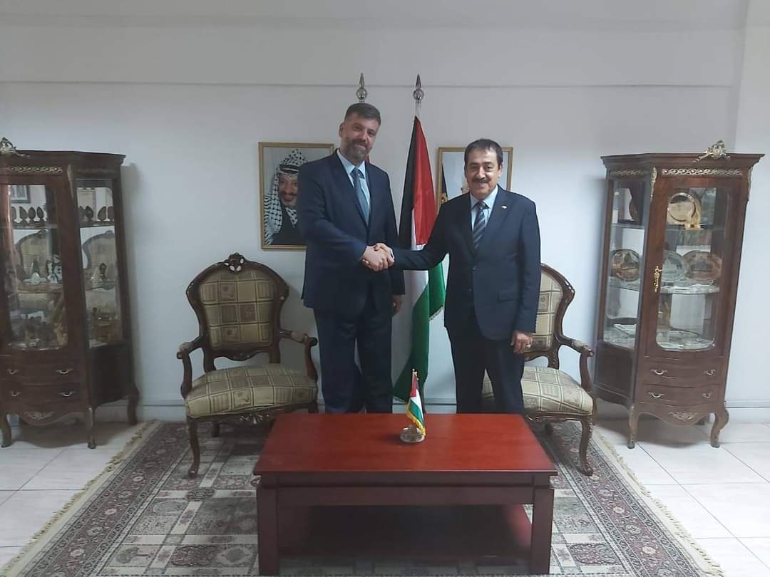 استقبل اليوم الاربعاء السفير حسام الدباس، قنصل عام دولة فلسطين، عميد السلك القنصلي بالإسكندرية، في مقر القنصلية العامة نظيره الروسي كارين فاسيليان، قنصل عام روسيا بالإسكندرية، وذلك في زيارة تعارف بروتوكولية بمناسبة توليه منصبه الجديد في الإسكندرية.