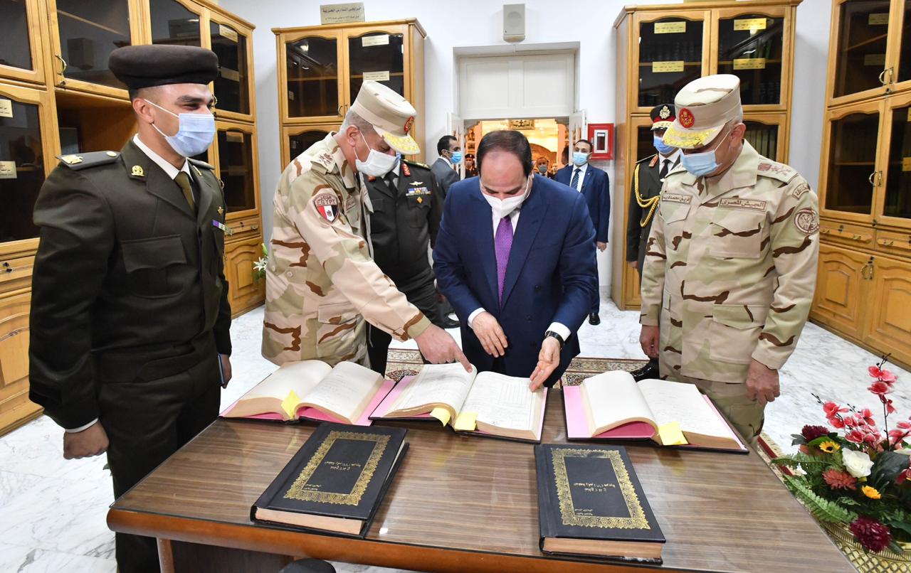 كما أكد الرئيس أن طلبة الكليات والمعاهد العسكرية يشكلون مع زملائهم من طلبة الجامعات المدنية أمل مصر وتطلعها نحو مستقبل أفضل، وأن ما تواجهه مصر من مخاطر وتحديات تتطلب إعداد أجيال علي اعلي درجات الوعي والادراك الصحيح بقضايا أمتها، وبذل أقصى جهد لإعداد هذه الأجيال وتطوير المناهج العلمية والمهارية لتتماشى مع ما تواجهه الدولة من تحديات.