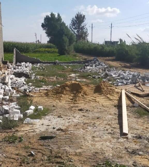 وإزالة حالة تعدي علي الأراضي الزراعية بمساحة ٢٠٠ متر بقرية الوفائية بالدلنجات عباره عن مباني مقسمة من الطوب الأبيض والمونه الاسمنتية.