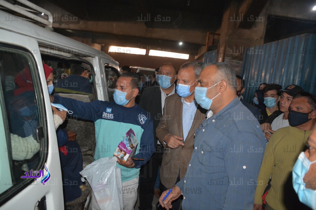 وقام المحافظ خلال الجولة بتوزيع الكمامات علي المواطنين مطالبا بضرورة الالتزام وارتداء الكمامة باستمرار.