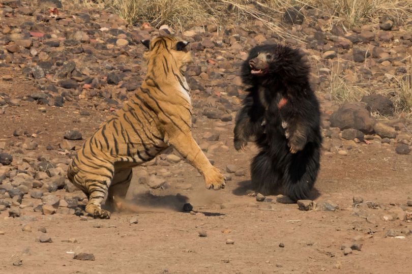 شهدت محمية بلغار الطبيعية في الهند عراكا عنيفا بين دب مفترس ونمرا بنغاليا شرسا، العراك كان مشوقا للغاية و دفع أحد المصورين للمغامرة بحياته والتقاط بعض الصور لهم.