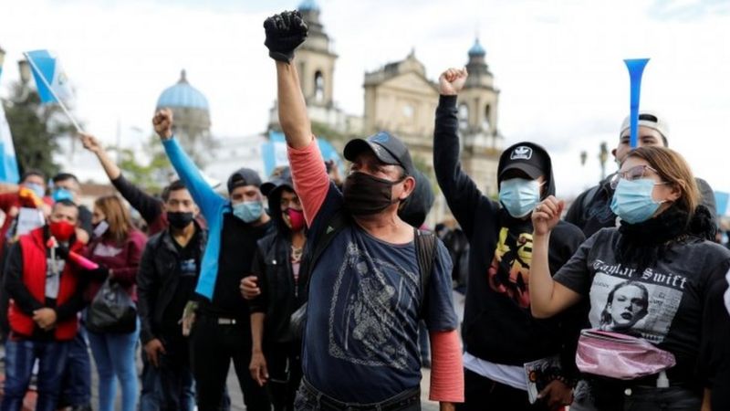وأمس السبت، ورفع المتظاهرون في الساحة المركزية للعاصمة جواتيمالا أمام قصر الثقافة الوطني، المقر السابق للحكومة، لافتات كتب عليها "الشعب يجب ألا يخاف من الحكومة بل الحكومات يجب أن تخاف من الشعب" و"ليرحل الفاسدون".