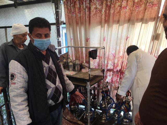 المقاهي والكافتريات بنطاق الوحدة المحلية بالعدلية واسفرت الحملة عن مصادرة