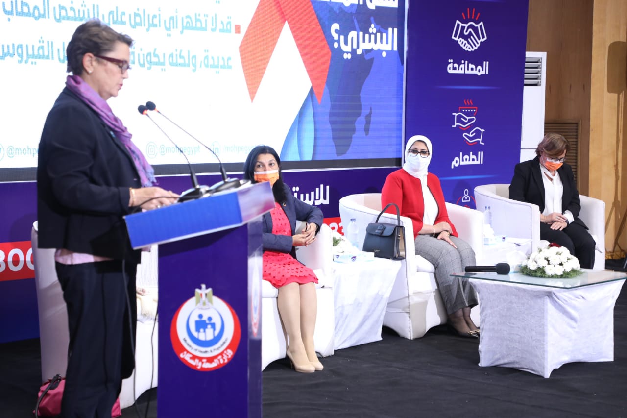 ومن جانبها، أشادت راندا أبو الحسن، ممثل مكتب منظمة الأمم المتحدة الإنمائي لمصر، بالجهود المبذولة من جانب الحكومة المصرية ووزارة الصحة والسكان، من أجل التصدي لفيروس نقص المناعة البشري (الإيدز)، كما أشادت بجهود الدولة للتصدي لجائحة فيروس كورونا المستجد، فضلًا عن تعزيز الصحة العامة لجميع المصريين من خلال حملة "100 مليون صحة" التي ألهمت العالم كإحدى أكبر الحملات الصحية التي تقودها الدول، مشيرة إلى تعاون برنامج الأمم المتحدة الإنمائي مع منظمات الأمم المتحدة الشريكة وبالتنسيق مع وزارة الصحة والسكان، لضمان استمرارية واستدامة خدمات الرعاية الصحية خلال مواجهة جائحة كورونا، بما في ذلك خدمات تقديم الرعاية الصحية للأشخاص المتعايشين مع (الإيدز).