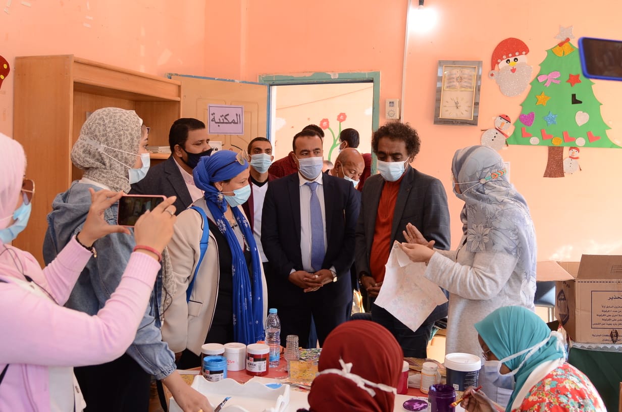 وفي ورشة النسيج المستحدث عقدت المدربة سماح رمضان جلسة تعريفية للمتدربين عرفت فيها الخامات والأدوات منها قماش الإيتامين، شرائط الساتان، ابرة الكروشيه، ثم البدء في طباعة بعض الرسومات على قماش الإيتامين تمهيدا للرسم عليها بشرائط الساتان، وفي ورشة المشغولات الجلدية قامت المهندسة ناهد أمين بتعريف الأدوات والخامات الجلدية وعرض نماذج لها مع عرض نماذج للتشكيلات والتقنيات المتنوعة والمختلفة للجلد باستخدام السنابك والخيوط.