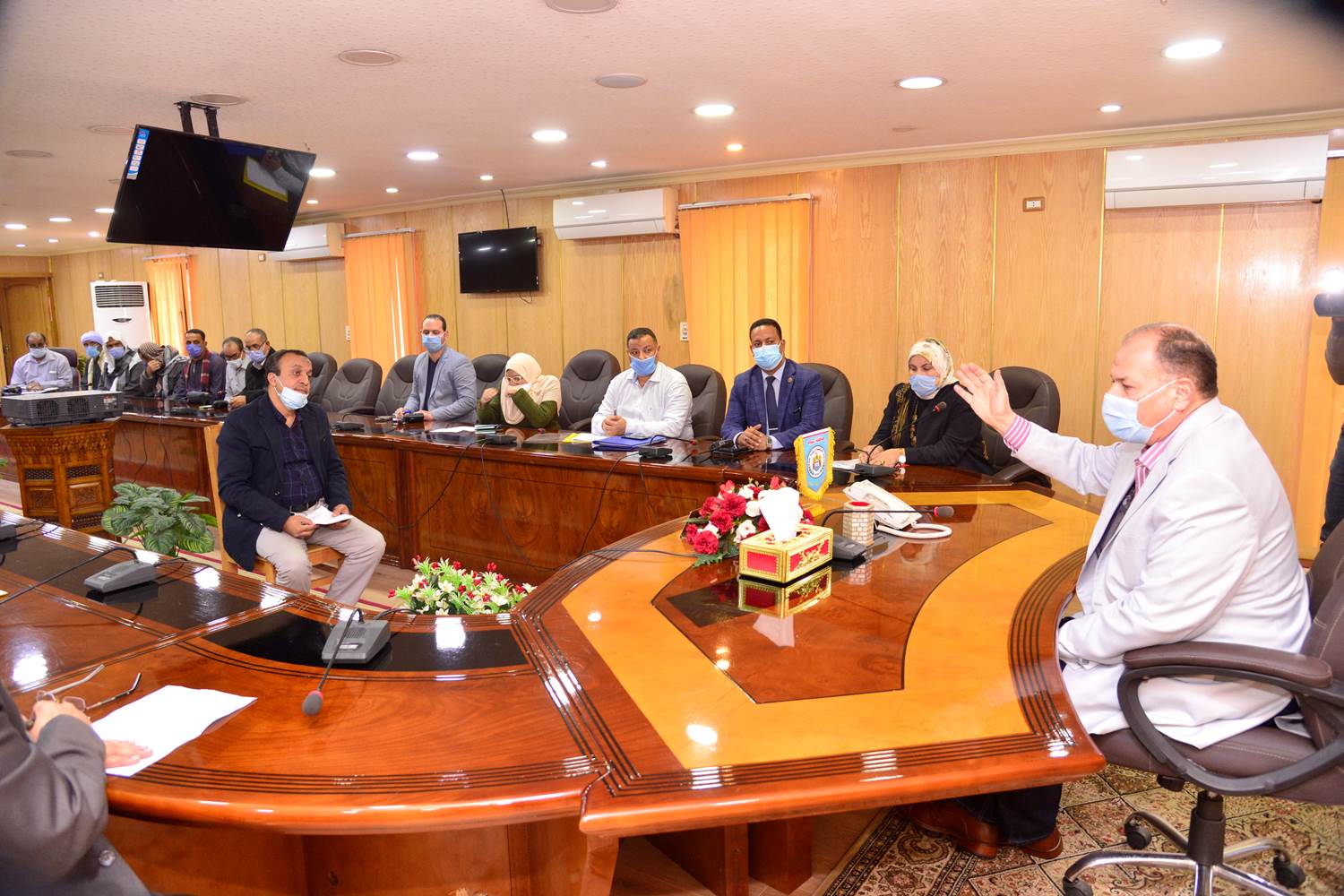 جاء ذلك بحضور المهندس نبيل الطيبي سكرتير مساعد المحافظة وعدد من القيادات التنفيذية بالمحافظة وممثلي القطاعات المختلفة المحافظة من بينهم العميد أركان حرب محمد وهيدي وكيل وزارة التضامن الاجتماعي وعلي سيد وكيل مديرية القوى العاملة ومنيرة بكري مدير إدارة خدمة المواطنين بالمحافظة ومصطفى أبوغدير مستشار المحافظ لشئون التضامن الاجتماعي وعلي عبدالله مدير جهاز تشغيل شباب الخريجين بالمحافظة وعبير عبدالغني مدير وحدة شئون الإعاقة بالمحافظة وذلك بقاعة الإجتماعات بالديوان العام.