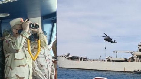تنفيذ تشكيل إستعراض بحرى جوى بمشاركة عدد من الوحدات البحرية والطائرات المتعددة المهام من الدول المشاركة