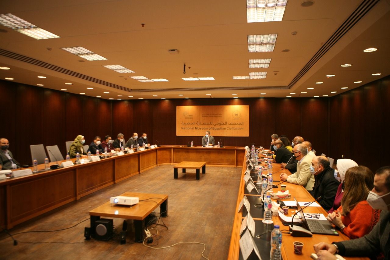 وناقش الاجتماع التجهيزات الفنية والعلمية والتقنية لعملية نقل المومياوات والتي يُشرف عليها لجنة متخصصة، والتجهيزات الخاصة بمعمل الترميم وفتارين العرض، بالاضافة الي مناقشة طريقة عرض المومياوات بالقاعة مع التوابيت الخاصة بها.