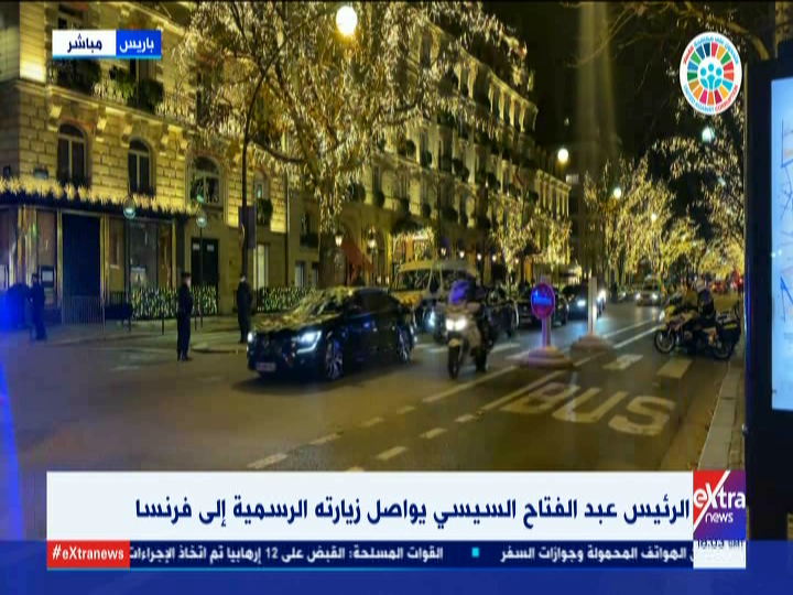عرضت فضائية " إكسترا نيوز " لقطات حية ترصد مغادرة الرئيس السيسي لمقر إقامته في باريس وذلك من أجل لقاء رئيس مجلس الشيوخ الفرنسي.