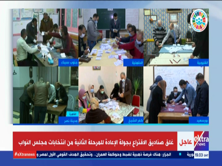 عرضت فضائية " إكسترا نيوز " لقطاتحية ترصد لحظة غلق صناديق الاقتراع في جولة الإعادةفي انتخابات مجلس النواب في مرحلتهاالثانية.