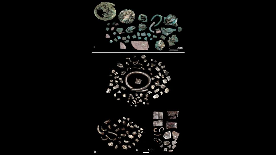 في ثمانية من الكنوز - التي يرجع تاريخها إلى وقت "انهيار العصر البرونزي المتأخر''، عندما عانت أقوى ممالك المنطقة من زوال عنيف في كثير من الأحيان - تم تحطيمها عمدًا، مع استبدال سبائك أرخص من النحاس بالكثير من الفضة والجزء الخارجي سطحه يشبه الفضة النقية.