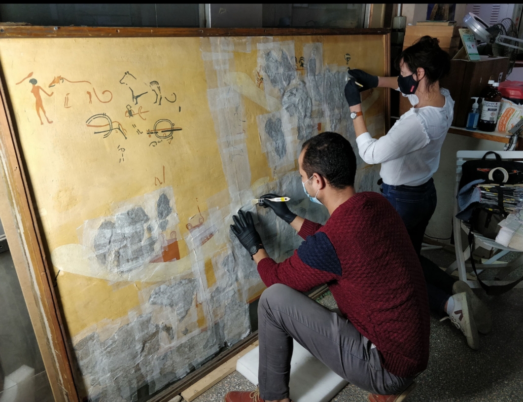 بدأ فريق من مرممي المتحف المصري بالتحرير في أعمال ترميم رسم جداريٌ من المقبرة رقم 100،بالتعاون مع المتحف البريطاني،والتي تم اكتشافها بمنطقة الكوم الأحمر (في محافظة قنا) وهي تعد أقدم مقبرة معروفة في مصر تحتوي على رسومات ملونة.