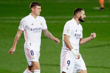 افتتح كريم بنزيما التسجيل لـ ريال مدريد في الدقيقة السادسة بعدما تلقى تمريرة رائعة من رودريجو، قبل أن يضاعف الكرواتي لوكا مودريتش من تقدم فريقه بتسجيله الهدف الثاني في الدقيقة 13.