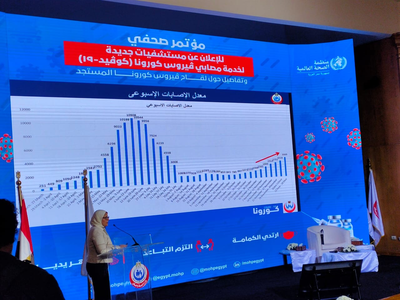 وعرضت الوزيرة موقف اللقاحات، مؤكدة أنه جار الإنتهاء من الإختبارات الخاصة باللقاح بحلول الأسبوع القادم عن طريق الهيئة القومية للرقابة والبحوث الدوائية، مشيرة إلى أن منظمة الصحة العالمية قامت بتدشين سلسلة تدريبات لمقدمي الخدمة الصحية عن لقاح فيروس كورونا المستجد، ويتم التنسيق مع المنظمة لتدريب مقدمي الخدمة الصحية بوزارة الصحة.
