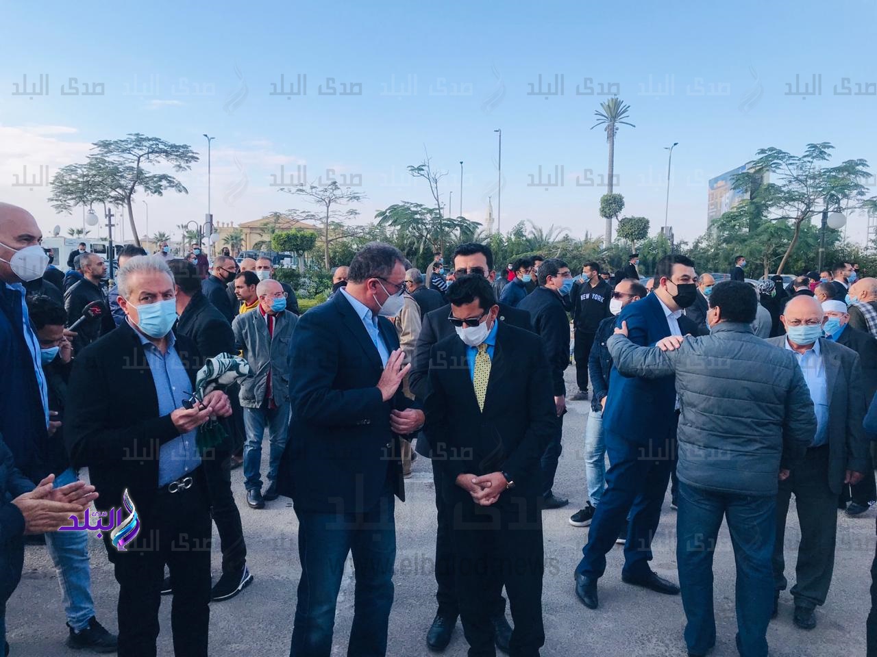 حرص محمود الخطيب رئيس نادي الأهلي، ووزير الشباب والرياضة أشرف صبحي ، في صلاة الجنازة المستشار أحمد بكرى .