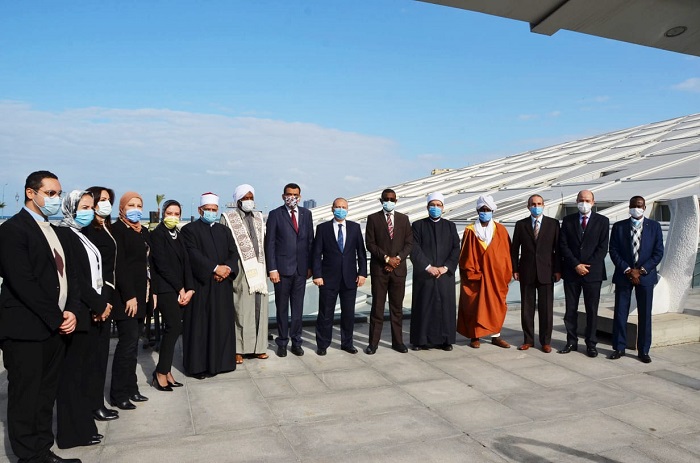 قام وزير الأوقاف الدكتور محمد مختار جمعة ونظيره السوداني الشيخ نصر الدين مفرح، على رأس وفد سوداني رفيع المستوى من القيادات الدينية بالسودان، بزيارة مكتبة الإسكندرية قبل انطلاق الدورة التثقيفية المشتركة للأئمة السودانيين والمصريين بمعسكر أبي بكر الصديق بالإسكندرية، وخلال الزيارة أبدى الوفد السوداني انبهاره بما تتضمنه مكتبة الإسكندرية من إرث حضاري وثقافي، فيما أشاد الشيخ نصر الدين مفرح وزير الأوقاف السوداني بمكتبة الإسكندرية، مؤكدًا أنها مفخرة ثقافية لم ير مكتبة مثلها ، ولو لم يكن للمصريين غيرها في الثقافة لكفاهم فخرًا.