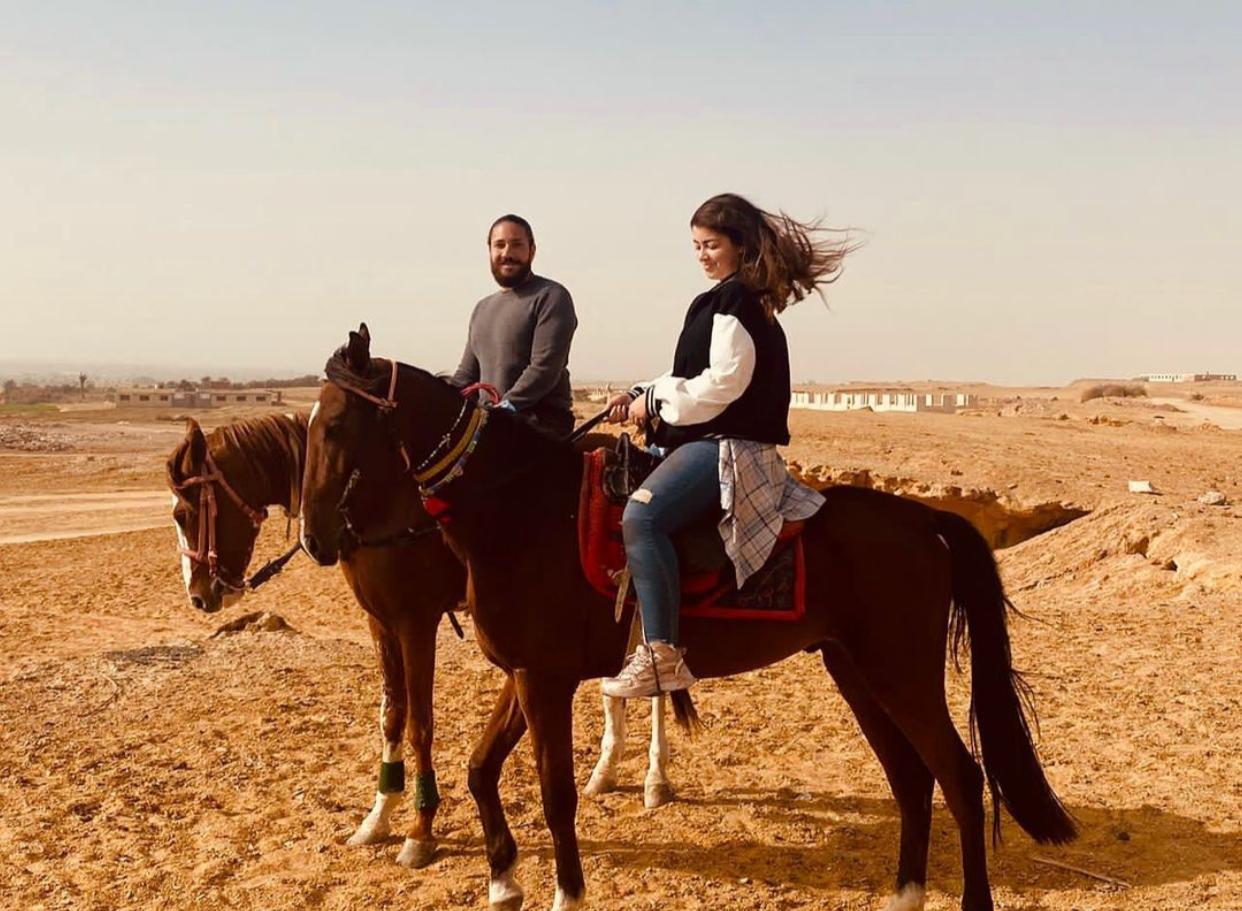 وظهرت ليلي أحمد زاهر، وهى تستمتع بركوب الخيل في أجواء مشمسة بستايل كاجوال شيك أبرز أناقتها.