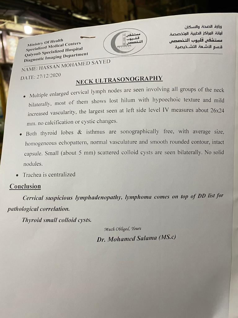 وأضاف «حالة حسن تسوء يوما بعد يوم، ويحتاج إلى نقل دم، ودرجة الانيميا 4 ونص، وانا مش عارف اعمل ايه ضنايا بيموت كل يوم قدام عينى ومش قادر اعمل له حاجة ولا قادر اوفر الدم وعلى عينى، عايز ابني يتعالج وحد يساعدني مش عايز أكتر من كدا»،مناشدا وزارة الصحة أن تنظر إلى حالة نجله بنظرة رحمة وعطف، مطالبا بالموافقة على علاجه على نفقة الدولة؛ نظرًا لعدم قدرته على تحمل تكلفة العلاج والغسيل الكلوي.