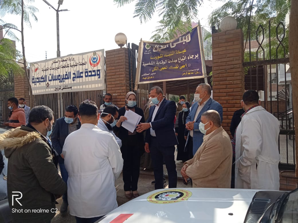 وتفقد وكيل الوزارة خلال الجوله جميع أقسام المستشفى وقسم العزل وذلك للاطمئنان على سير العمل والاطمئنان على الخدمات المقدمة لمرضى فيروس كورونا ومدى التزام الفرق الطبية بتطبيق احدث بروتوكول للعلاج.