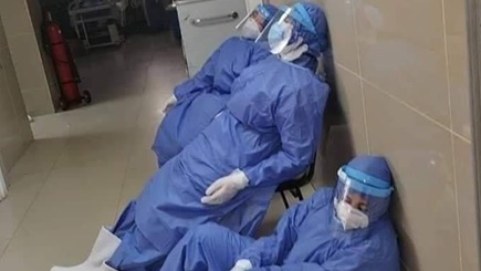 نشرت دار الإفتاء المصرية،فى منشور لهاعبر صفحتها الرسمية بموقع التواصل الإجتماعي فيسبوك،صورًا لأطقم التمريض بأحد المستشفيات أنهكهم التعب في خدمة مصابي كورونا، وتناشد بشدة على إرتداء الكمامة.