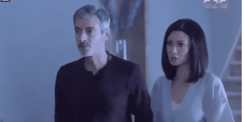 وجمع المشهد أروى جودة "نائلة" وزوجها إياد نصار "أكرم" وصديقها محمد سليمان "هاني" عندما عاد أكرم من خارج المنزل ليجد نائلة وهاني قادمان من الدور العلوي.