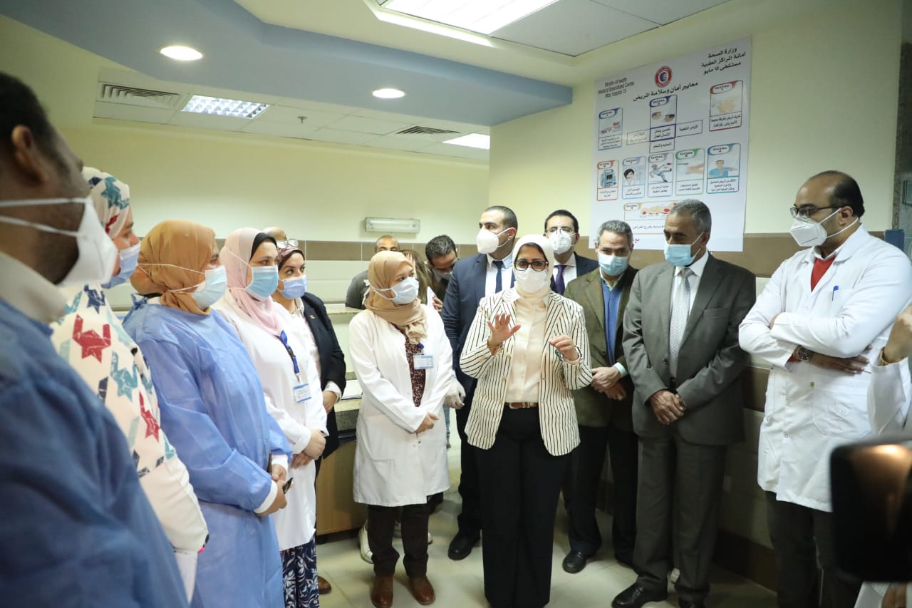 و استمعت الوزيرة لشرح مفصل عن نسب الإشغال بالمستشفى، ومعدل الشفاء، والحالة الصحية للمرضى، مؤكدة على أهمية الحفاظ على استمرار تقديم الرعاية الطبية اللازمة للمرضى على أكمل وجه، و أهمية تقديم الدعم النفسي لمصابي فيروس كورونا لما له من تأثير في تحسين حالتهم الصحية،