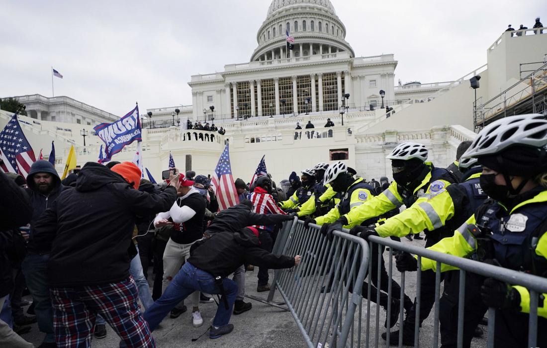 ومساء الأربعاء، اقتحمت حشود من أنصار الرئيس دونالد ترامب الحواجز التي وضعتها الشرطة حول مبنى الكونجرس. وصعدوا إلى الباحة الرئيسية للمبنى، ورفعوا أعلاما مناصرة لترامب.