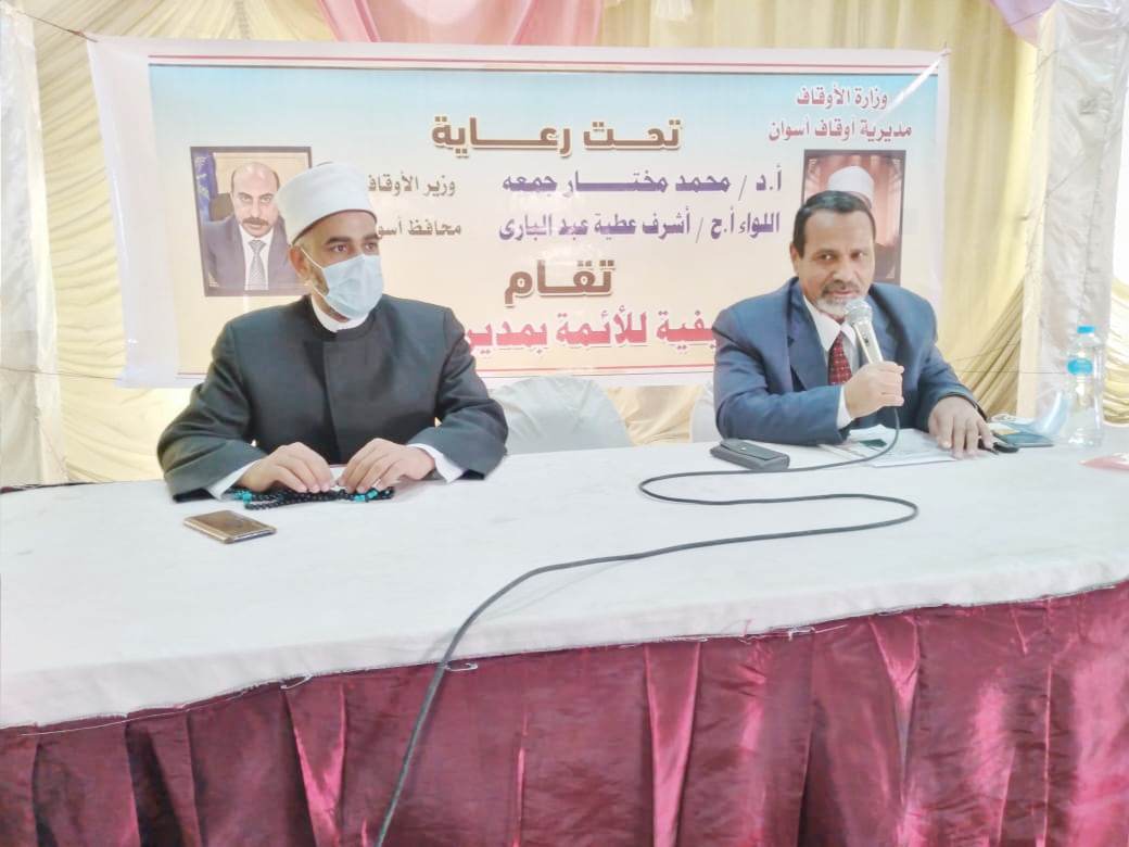 وفي بداية اللقاء رحب فضيلة الدكتورمحمد عزت وكيل مديرية أوقاف أسوان بالحضور مؤكدا أن وزارة الأوقاف تعمل جاهدة تحت قيادة الدكتور محمد مختار جمعة على الارتقاء بمستوى الأداء العلمي لدى السادة الأئمة وصولا إلى أعلى درجات التميز والإجادة لنشر سماحة الدين ونبذ كل ألوان التطرف وتقديم خطاب ديني مستنير ومنضبط لمعالجة قضايا العصر .
