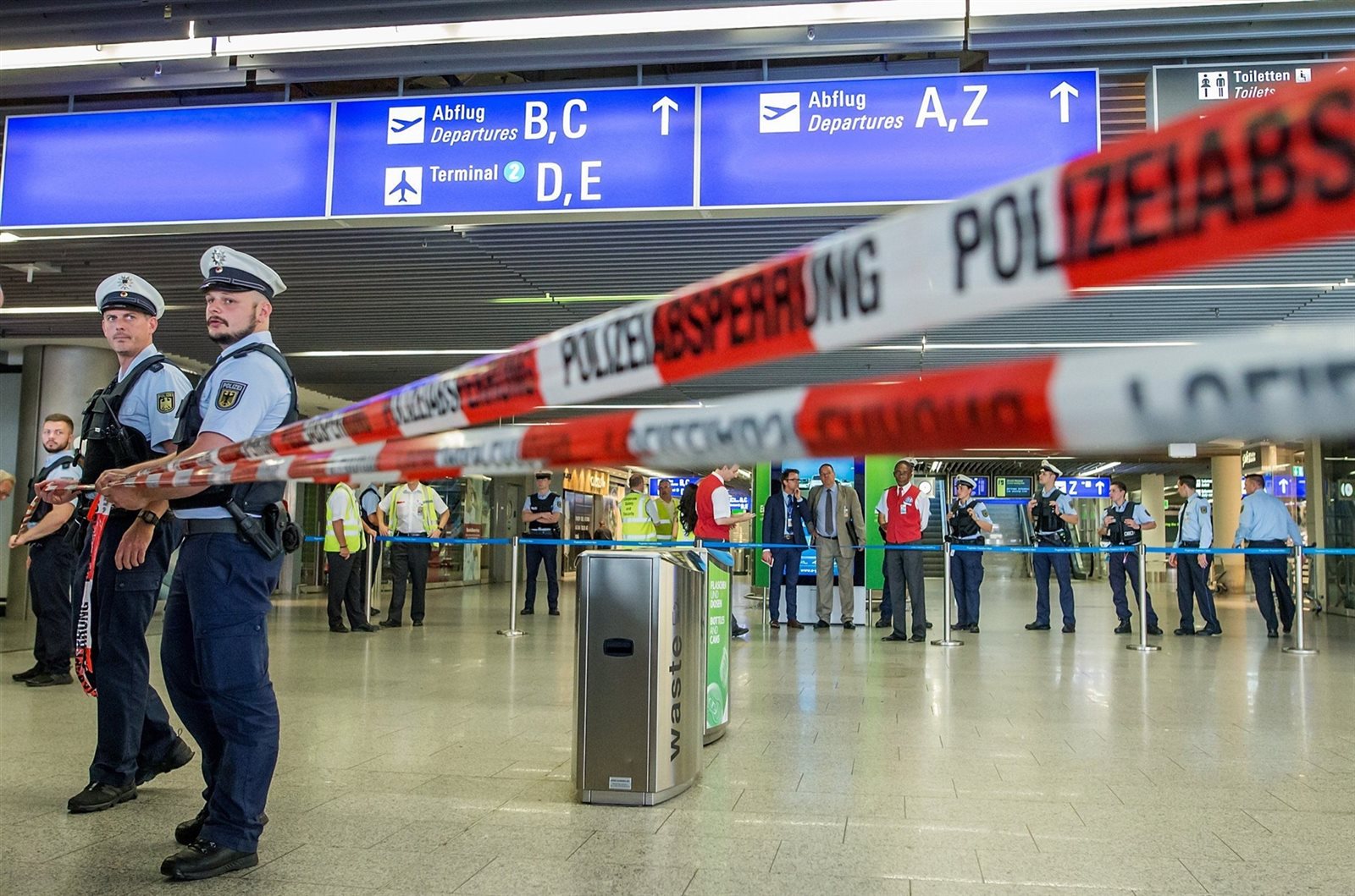 قالت الشرطة الاتحادية الألمانية إن مطار فرانكفورت أغلق جزئيا اليوم بعد أن صرخ مواطن سلوفيني يبلغ من العمر 38 عاما "سأقتلكم جميعا يا الله أكبر" تجاه ضباط إنفاذ القانون في المبنى رقم 1.