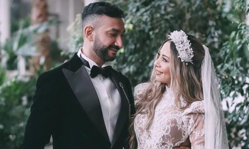 وظهر ايتن عامر فى الصورة الملحن نادر حمدى و زوجته من سيشن حفل زفافهم وهى تهنئهم.