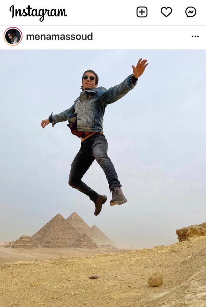 حرص النجم المصري العالمي مينا مسعود بطل فيلم ديزني الشهير "علاء الدين"، على تسجيل زيارته إلى منطقة أهرامات الجيزة بنشر صورة له بالمنطقة على حسابه الشخصي علي منصة التواصل الاجتماعي انستجرام.