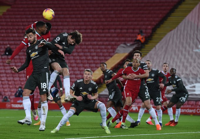 برونو فيرنانديز كان قريبًا من تسجيل الهدف الأول لـ مانشستر يونايتد، بضربة حرة مباشرة في الدقيقة 33، جاورت مرمى أليسون بيكر بقليل.