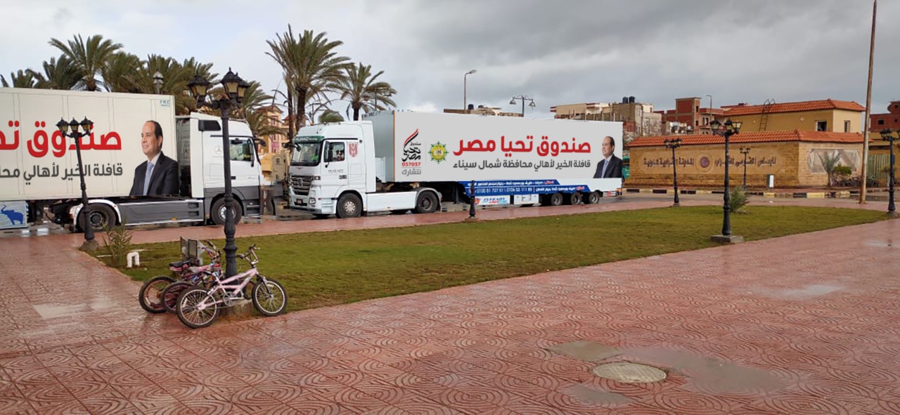 وصلت صباح اليوم، الأربعاء، قوافل صندوق تحيا مصر لمحافظة شمال سيناء، استعدادا لتنظيم عدد من أنشطة الصندوق في مجال الرعاية الصحية، والحماية الاجتماعية لأهالي بئر العبد، نخل، الحسنة، العريش، الشيخ زويد، ورفح، تحت شعار نتشارك من أجل الإنسانية، وذلك تنفيذا لتوجيهات الرئيس عبد الفتاح السيسي، رئيس الجمهورية.