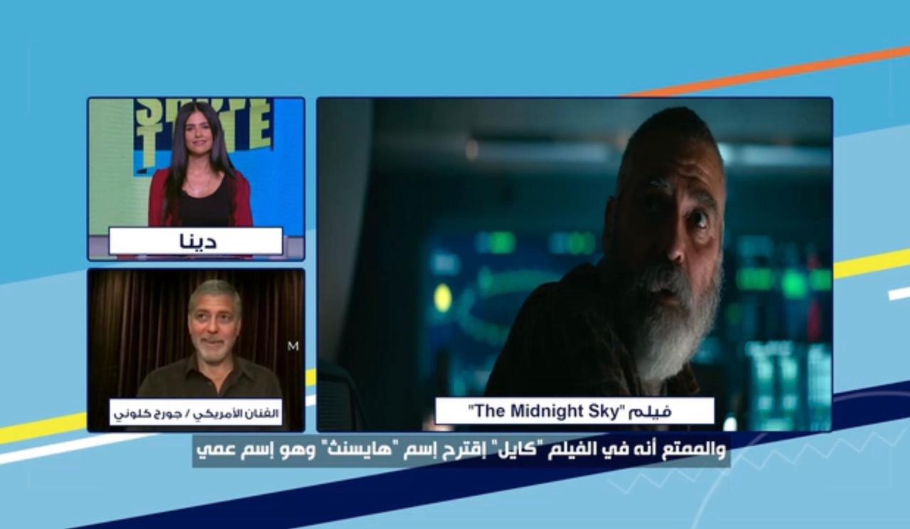 يتحدث جورج كلوني خلال اللقاء عن فيلم The Midnight Sky، الذي قام بإخراجه وشارك في بطولته مع فيليسيتي جونز وديفيد أويلو، وتم عرضه عبر منصة نتفليكس في الثالث والعشرين من ديسمبر الماضي.