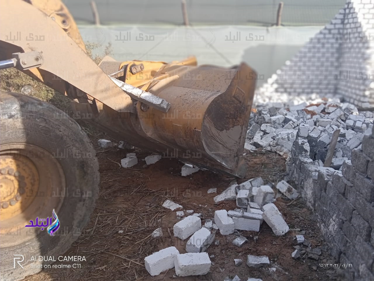 - إزالة 6 حالات تعدي في المهد على الأراضي الزراعية بمساحة 951 متر بقرية الوفائية بالدلنجات عبارة عن مباني مقسمة من الطوب الأبيض والمونه الاسمنتية.