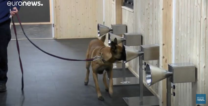 عرضت فضائية "يورونيوز" تقريرا عن قيام دولة بلجيكا بـ تدرّب الكلاب على شم رائحة العرق لاكتشاف المصابين بكوفيد 19.