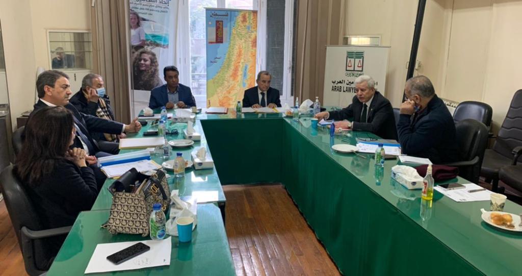 جاء ذلك خلال اجتماع الأمانة العامة لاتحاد المحامين العرب والذي عقد بمقر الاتحاد بالقاهرة برئاسة النقيب المكاوي بنعيسى الأمين العام للاتحاد وبحضور أعضاء الأمانة العامة ومشاركة النقيب مازن إرشادات نقيب المحامين بالأردن رئيس دورة الانعقاد الطارئ و المستمر للمكتب الدائم وبمشاركة النقيب فيراس فارس نقيب المحامين السوريين .