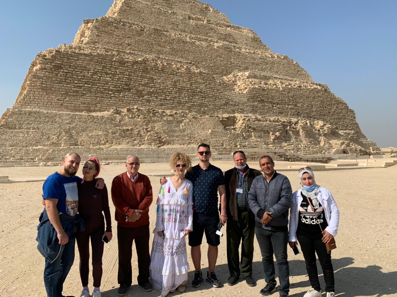 وفور عودتهم من مدينة الأقصر مساء أمس توجهوا لاستكمال زيارتهم بمدينة القاهرة، حيث زاروا قلعة صلاح الدين الأيوبي، ومنطقة أهرامات الجيزة، ومنطقة سقارة الأثرية حيث كان يرافقهم السيد صبري فرج مدير منطقة آثار سقارة، وقاموا بجولة داخل هرم زوسر المدرج وزيارة السيرابيوم وبعض المقابر الأثرية بالمنطقة منها مقبرة نمتي مس، ومقبرة مايا.