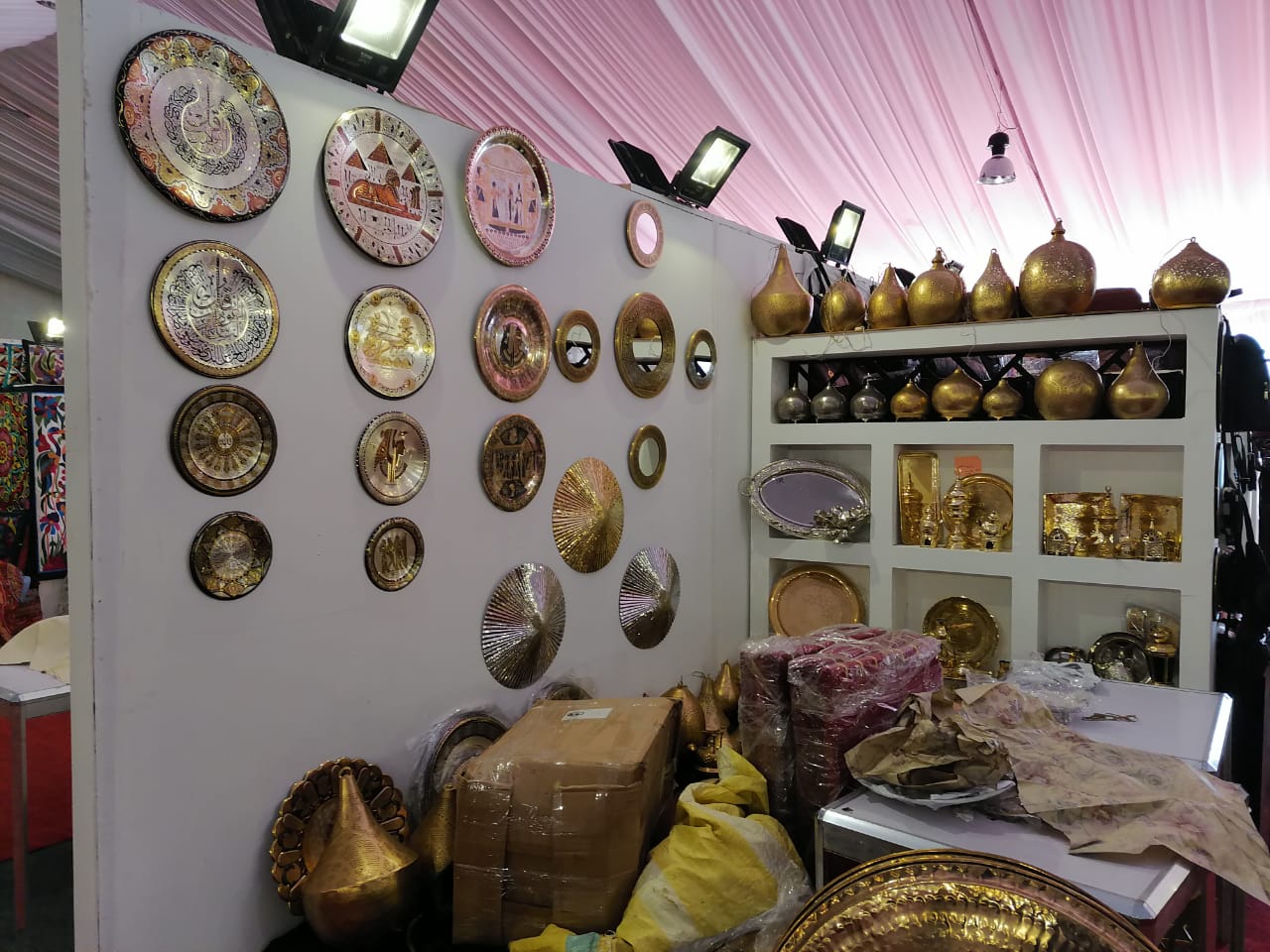 ويضم المعرض منتجات تراثية يدوية من الخزف والمفروشات والسجاد والكليم والنحاس والصدف والخيامية والمفروشات والاكسسوارات الحريمي والمنزلي، وكروشيه ولوحات فنية، ومنتجات الألباستر، ومنتجات جلدية، وخوص ومنتجات غذائية، ومنتجات تجميل وعناية بالبشرة، والزي السيناوي ،بالإضافة إلى المنتجات التى تمير محافظات« قنا-سوهاج- أسوان- الأقصر»