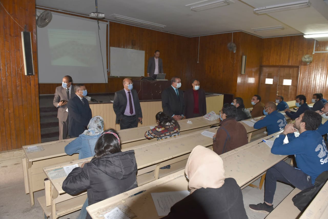 خلال جولته ببعض اللجان اطمئن رئيس الجامعة علي انتظام وانضباط الإمتحانات، وتأكد من مدي ملاءمتها لمستوي الطلاب، وشدد علي الطلاب والملاحظين بضرورة الإلتزام بالإجراءات الوقائية لمنع انتقال عدوي فيروس كورونا.