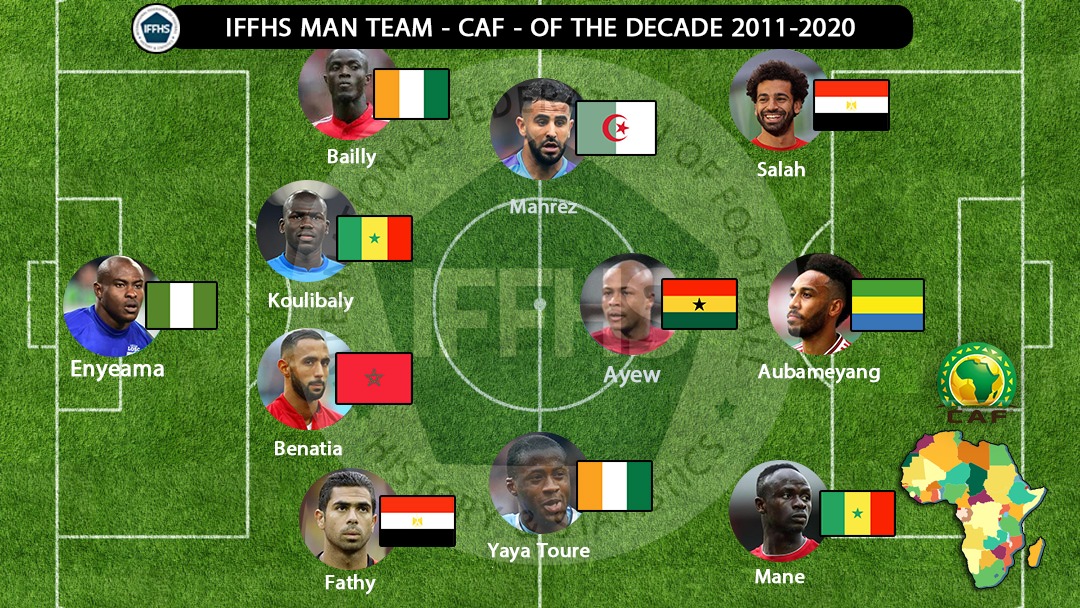 نشر الاتحاد الدولي للتأريخ والإحصاء التشكيل المثالي لقارة إفريقيا في العقد الماضي لأفضل لاعبين ظهروا في الفترة بين 2011 و حتى2020.