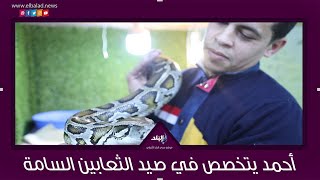 بدأ أحمد رجب حديثه لكاميرا "صدي البلد"، قائلًا: "صيد الثعابين هواية مش مهنتي الأساسية، بدأت فيها وأنا عندي ٩ سنين، كنت انا واخويا في أرض زراعية ولاقينا ثعبان، رد فعل تلقائي مسكت طوبة وعاوز اقتله، بس لقيت الثعبان مسالم وسلوكه هادئ، فنزلت الطوبة ومسكت الثعبان بدل ما اقتله، وكان دا اول تعامل ليا مع ثعبان".