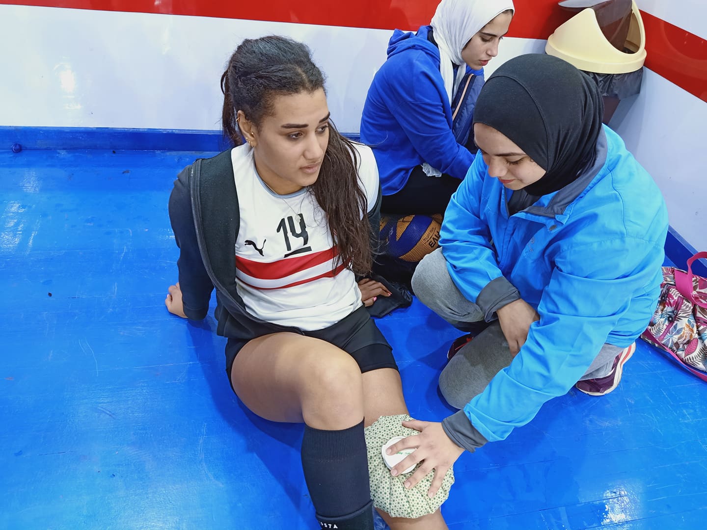 حيث تعرضت لاعبة فريق الطائرة للاصابه خلال مباراة الفريق الأبيض اول أمس أمام سبورتينج والتي فاز بها الزمالك بنتيجة 3 - 1.