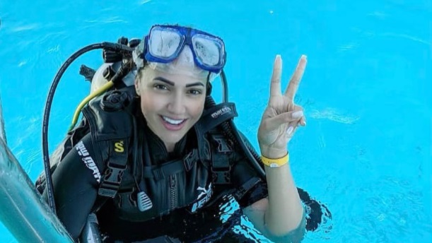 وظهرت إيمى طلعت زكريا فى الصورة من البيسين وهى تتعلم الغوص، ونالت الصورة إعجاب متابعيها .